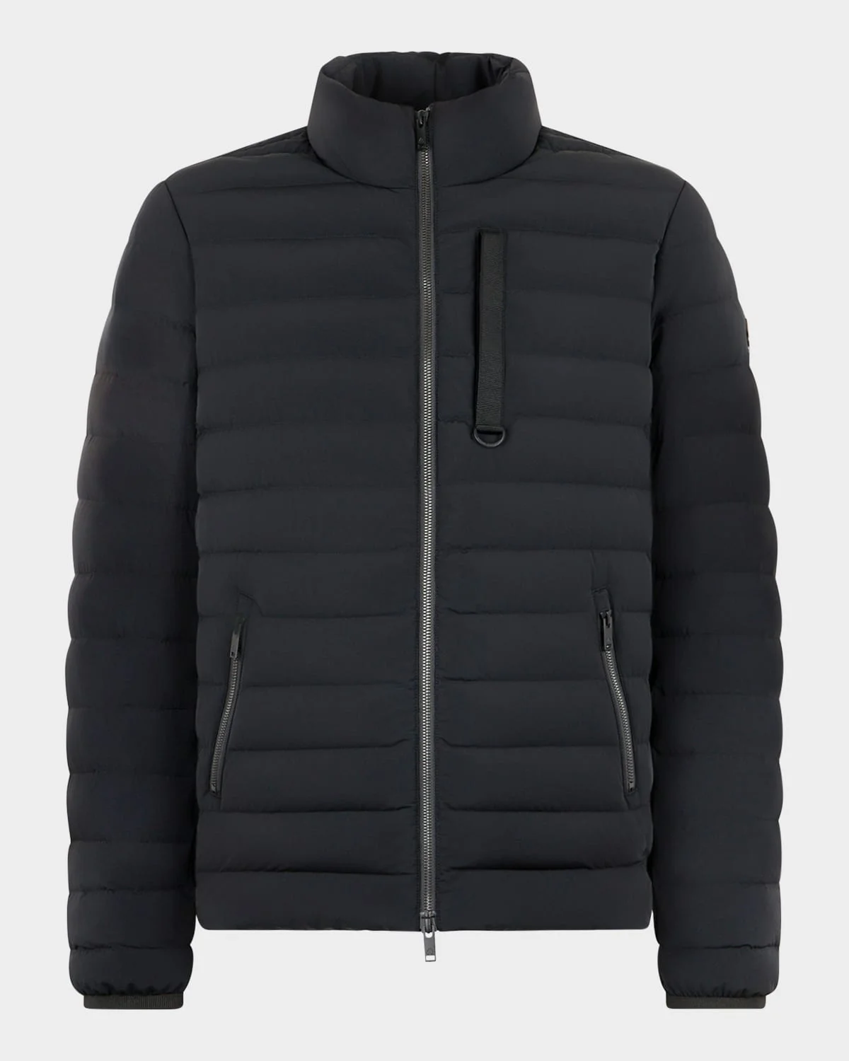 The ultimate in lightweight down, the waterrepellent, windresistant "Laki Jacket" from Moose Knuckles features cozy 90/10 down and a quilted, highperformance shell. Stand collar Long sleeves Welt/zip pocket with Dring Twoway zip closure Side zip pockets Eclon® nylon Lining: Nylon/elastane Fill: Duck down/feather Dry clean, machine wash cold Imported