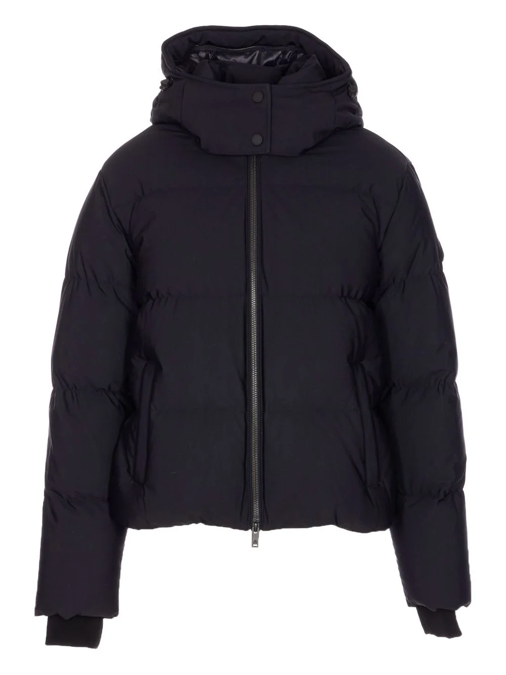 detachable-hood puffer jacket Highlights - Black - Duck down filling - Frontal zip closure - Button closure - Long sleeves - Quilted design Imported Composition Outer: Recycled Nylon 100%, Nylon 76%, Elastane 24% Lining: Duck Down 90%, Feather 10% Washing instructions Read Manufacturer Guidelines