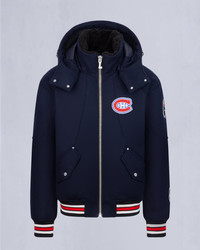 Celebrate the NHL's oldest (and most winning) team with the exclusive NHL x Moose Knuckles Canadiens Bomber. High-performance engineering and cozy warmth meet hometown pride in this piece, which features the team's classic red and blue color combination. Size & Fit - Relaxed Fit : An easy and comfortable silhouette, cut with extra room on the body to allow for freedom of movement. It provides added shape, and it is comfortable. - 26.5"(67cm) Center Back Length. Measurement is done based on a Medium. Product Features Warmth & Protection - Protection Rating - Level 2: Cold – Your everyday winter workhorse. These garments will hold you down through the rain, sleet, hail and snow without overheating. - Genuine Sheep Shearling - Engineered in Canada, Water Repellent, Wind resistant Design & Function - Removable Hood with Removable Shearling Trim - Sherpa Lined Collar - 1-Way Zipper - 2 Snap Pockets - Montreal Canadiens Patch, Moose Team Patch, NHL Patch SKU: 822185898520 Materials & Care Fill Responsible Down Standard Certified 90% Duck Down, 10% Feathers Composition - Body: 78% Wool, 22% Polyester - Lining: 100% Recycled Nylon - GRS-Certified, RDS-Certified Care Dry Clean Only Country of Origin Made in Vietnam