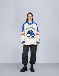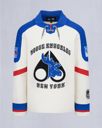 Celebrate the New York team with our take on the classic hockey jersey. High-performance craftmanship and hometown pride come together in this piece, which features the New York Rangers' traditional red, blue, and white colorway. Size & Fit - Relaxed Fit : An easy and comfortable silhouette, cut with extra room on the body to allow for freedom of movement. It provides added shape, and it is comfortable. - 30"(76cm) Center Back Length. Measurement is done based on a Medium. Product Features Warmth & Protection - Engineered in Canada Design & Function - Rib Knit Collar - New York Rangers Patch, Moose Team Patch, NHL Patch SKU: 822185859286 Materials & Care Composition - Body: 100% Cotton Care Dry Clean Only Country of Origin Made in China