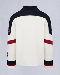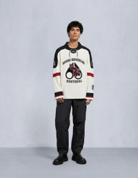 Celebrate the exclusive Moose Knuckles x NHL collaboration with our Moose team branded hockey jersey, inspired by the classic garment worn on the rink. With two distinct versions—both featuring a cream, black, and red colorway, it includes the NHL and Moose Knuckles branding in addition to a majestic moose on the front. Size & Fit - Relaxed Fit : An easy and comfortable silhouette, cut with extra room on the body to allow for freedom of movement. It provides added shape, and it is comfortable. - 30"(76cm) Center Back Length. Measurement is done based on a Medium. Product Features Warmth & Protection - Engineered in Canada Design & Function - Rib Knit Collar - Logo Patch SKU: 822185859224 Materials & Care Composition - Body: 100% Cotton Care Dry Clean Only Country of Origin Made in China