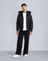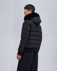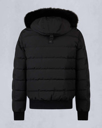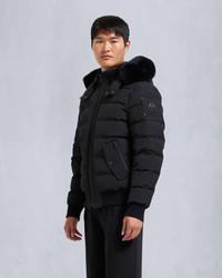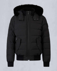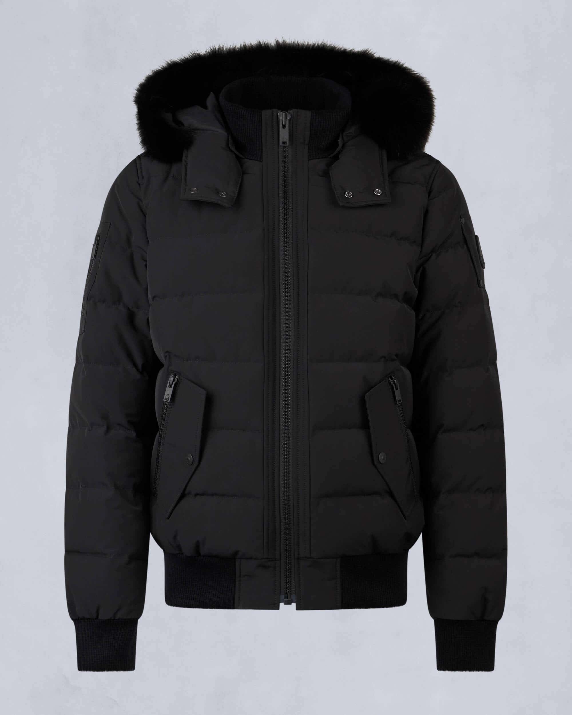 The Onyx Scotchtown Bomber updates our classic bomber silhouette with a nearly-silent polyester shell, trading durability for a more refined aesthetic when compared to our Ballistic Bomber. Luxurious 90/10 goose down fill continues to ensure our highest protection rating. SIZE & FIT - Slim Fit: A tailored silhouette, cut close to the body throughout the chest, waist, hip, and thigh. Its close profile minimizes volume, moves with the body, and it comfortably accommodates lightweight layers. Those who are in-between sizes or prefer extra room for layering may wish to size up. - Model is wearing size M. Models are 5'10" and 6'2". - 27" (68cm) Back Length. Measurement is done based on a Medium. WARMTH & PROTECTION - Protection Rating - Level 4: Canada Cold – Tailored and engineered specifically to endure the extreme cold of Canada - the True North. - 800 Fill Power - Fox Fur - RDS Sustainable, Water Repellent, Water Resistant, Wind resistant DESIGN & FUNCTION - Snap Off Hood with Fur Trim and Drawcord - Knit Stand Collar - YKK Metal Zipper with Logo Puller - Micro Fleece Lined Double Entry Zipper And Welt with Flap Pockets and 2 Inside Zipper Pockets - Matte Black Iconic Metal Logo CARE & MATERIALS Exclusive of fur and trims, dry clean only. Dry cleaner to dry clean inside out. Tumble dry until garment is fully dried. FILL 90% Goose Down,10% Waterfowl Feathers COMPOSITION - 100% Polyester - Polyester - Lining: 100% Nylon COUNTRY OF ORIGIN Made in Canada with Canadian and imported materials.