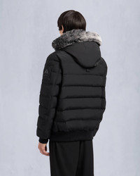 Stay warm in style with our bomber jacket, featuring sleek monochromatic hardware for a modern touch. Designed to withstand the harshest cold, this jacket ensures you stay cozy and effortlessly chic in any weather. Size & Fit - Slim Fit : Our signature silhouette, cut close to the body throughout the chest, waist, hip, and thigh. Since it fits slimmer than standard, we recommend sizing up from your usual size if you prefer extra room. - 27"-69cm Center Back Length. Measurement is done based on a Medium. Product Features Warmth & Protection - Protection Rating - Level 4: Canada Cold – Tailored and engineered specifically to endure the extreme cold of Canada - the True North. - 800 Fill Power - Genuine Sheep Shearling - Engineered in Canada, RDS-Certified, Water Repellent, Water Resistant, Wind resistant Design & Function - Removable Hood with Shearling Trim - 2-Way Zipper - 2 Zip Pockets, 2 Flap Pockets - Metal Logo SKU: 822185729190 Materials & Care Fill Responsible Down Standard Certified 90% Goose Down, 10% Feathers Composition - Body: 100% Polyester - Lining: 100% Nylon - RDS-Certified Care Remove Detachable Trims Before Cleaning The Garment. Dry Clean Inside Out - Mild Process. Ironing Maximum Temperature 110°C - Without Steam. Country of Origin Made in Vietnam