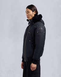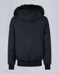 Brave the cold in style with our bomber jacket, featuring luxurious shearling trim for added warmth and flair. Engineered to keep you cozy in even the most extreme temperatures, this jacket combines fashion and function effortlessly. SIZE & FIT - Regular Fit: Regular is an understated silhouette, cut with room for movement throughout the chest and arms. It offers added agility without sacrificing structure and it comfortably accommodates midweight layers. - 28" (71cm) Back Length. Measurement is done based on a Medium. WARMTH & PROTECTION - Protection Rating - Level 4: Canada Cold – Tailored and engineered specifically to endure the extreme cold of Canada - the True North. - 650 Fill Power - Toscana Shearling on Trim DESIGN & FUNCTION - 2-Way Adjustable Hood with Attached Shearling Trim - 1-Way Zipper with Axe Puller - 2 Pockets at Waist and 2 Pockets below Waist - Gold Trims, Signature J-Seam on Front, Rivets on Seams for Reinforcement, Side Seam Vents with Zipper Closure, Zipper Opening on Sleeve Hems, Rib Knit Cuffs - Metal Logo CARE & MATERIALS Remove Detachable Trims Before Cleaning The Garment. Machine Wash Cold Water Inside Out. Do Not Bleach. Tumble Dry Low Heat With Clean Tenis Balls. Garment To Be Fully Dried Before Removing It From The Dryer. Ironing Maximum Temperature 110 FILL 80% Duck Down, 20% Feathers COMPOSITION - Body: 74% Cotton, 26% Nylon - Cotton - Lining: 100% Nylon COUNTRY OF ORIGIN Made in China