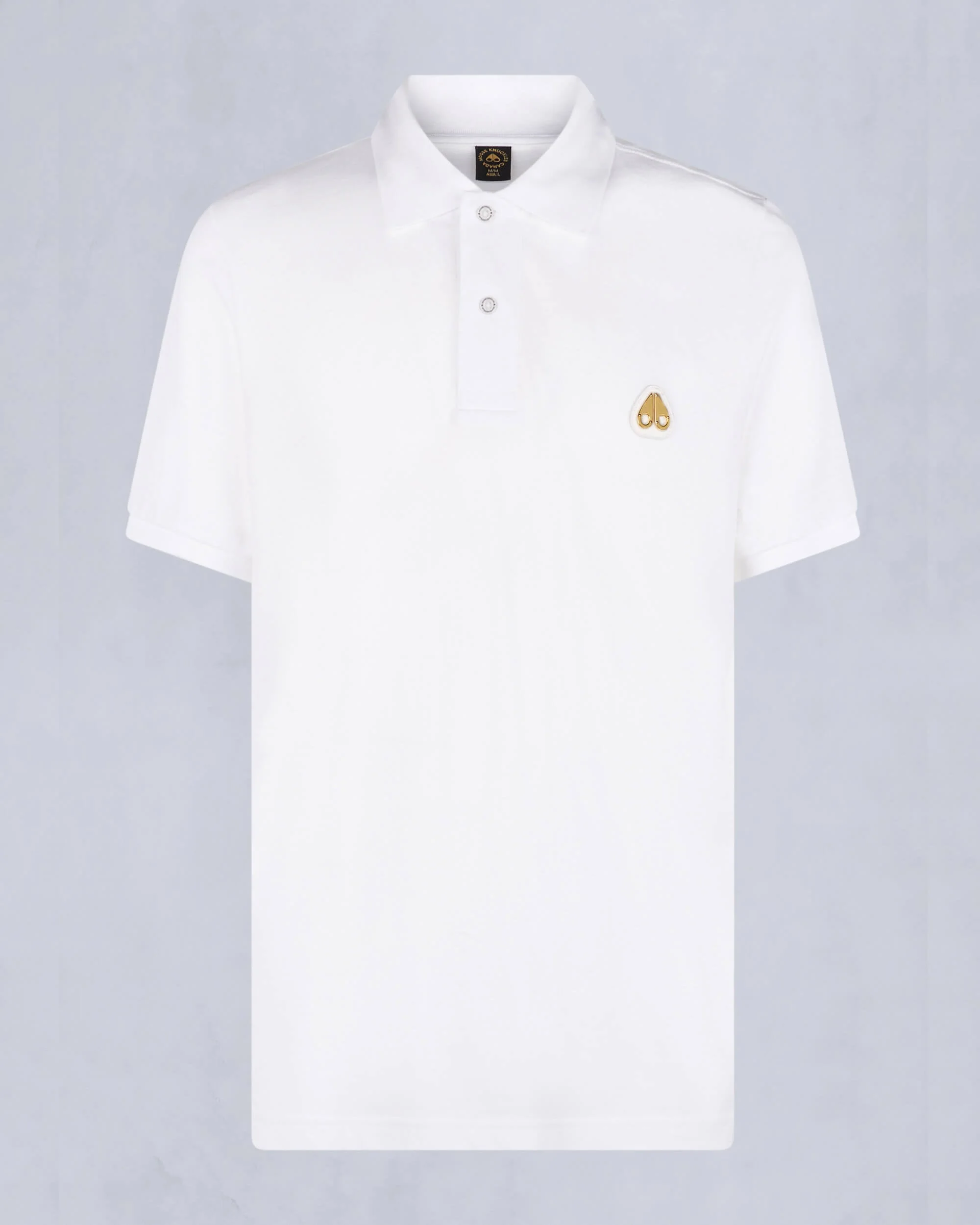 Our Cotton Polo features a striking gold Moose Knuckles logo at the front, adding a touch of luxury to your casual ensemble. Size & Fit - Regular Fit : Regular is an understated silhouette, cut with room for movement throughout the chest and arms. It offers added agility without sacrificing structure and it comfortably accommodates midweight layers. - Model is 6'2' wearing size M - 27" (68cm) Back Length. Measurement is done based on a Medium. Product Features Design & Function - Ribbed Knit Collar - Button Closure on Front - Triangle Patch with Gold Logo SKU: 822185671499 Materials & Care Composition - Body: 100% Cotton Care Machine wash cold water inside out. Wash dark colors separately. Do not bleach. Line dry. Ironing maximum temperature 110°c. Dry clean inside out - mild process. Country of Origin Made in Peru