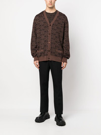 all-over logo knit cardigan brown virgin wool intarsia-knit logo all-over logo embroidery front button fastening long sleeves ribbed cuffs ribbed hem Imported Composition Viscose 100%, Virgin Wool 100% SIZE & FIT Model measurements Height 6 ft 1 in(1.86 m) Bust/Chest 37.4 in(95 cm) Hips 34.64 in(88 cm) Waist 29.13 in(74 cm) FittingInformation This piece fits true to size. We recommend you get your regular size Cut for a loose fit Made with a mid-weight fabric Washing instructions Dry Clean Only