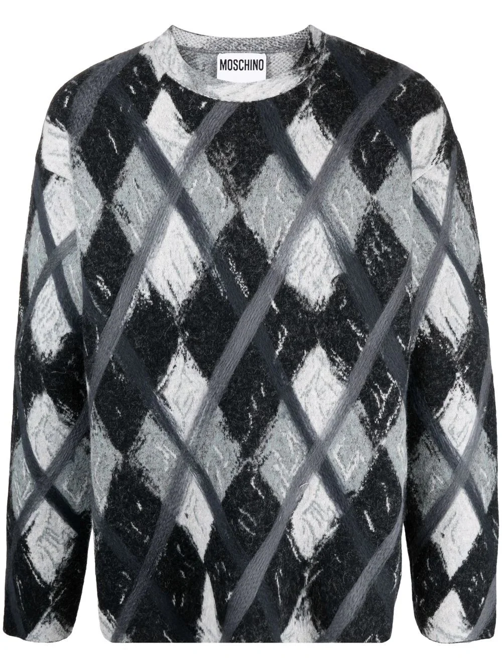 argyle-pattern wool-blend jumper grey/black wool-blend argyle check pattern crew neck long sleeves straight hem Made in Italy Composition Alpaca Wool 55%, Polyamide 35%, Wool 10% SIZE & FIT Model measurements Height 6 ft 3 in(1.9 m) Bust/Chest 38.18 in(97 cm) Hips 37.79 in(96 cm) Waist 32.67 in(83 cm) FittingInformation This piece fits true to size. We recommend you get your regular size Cut for a loose fit Made with a mid-weight fabric Washing instructions Dry Clean Only