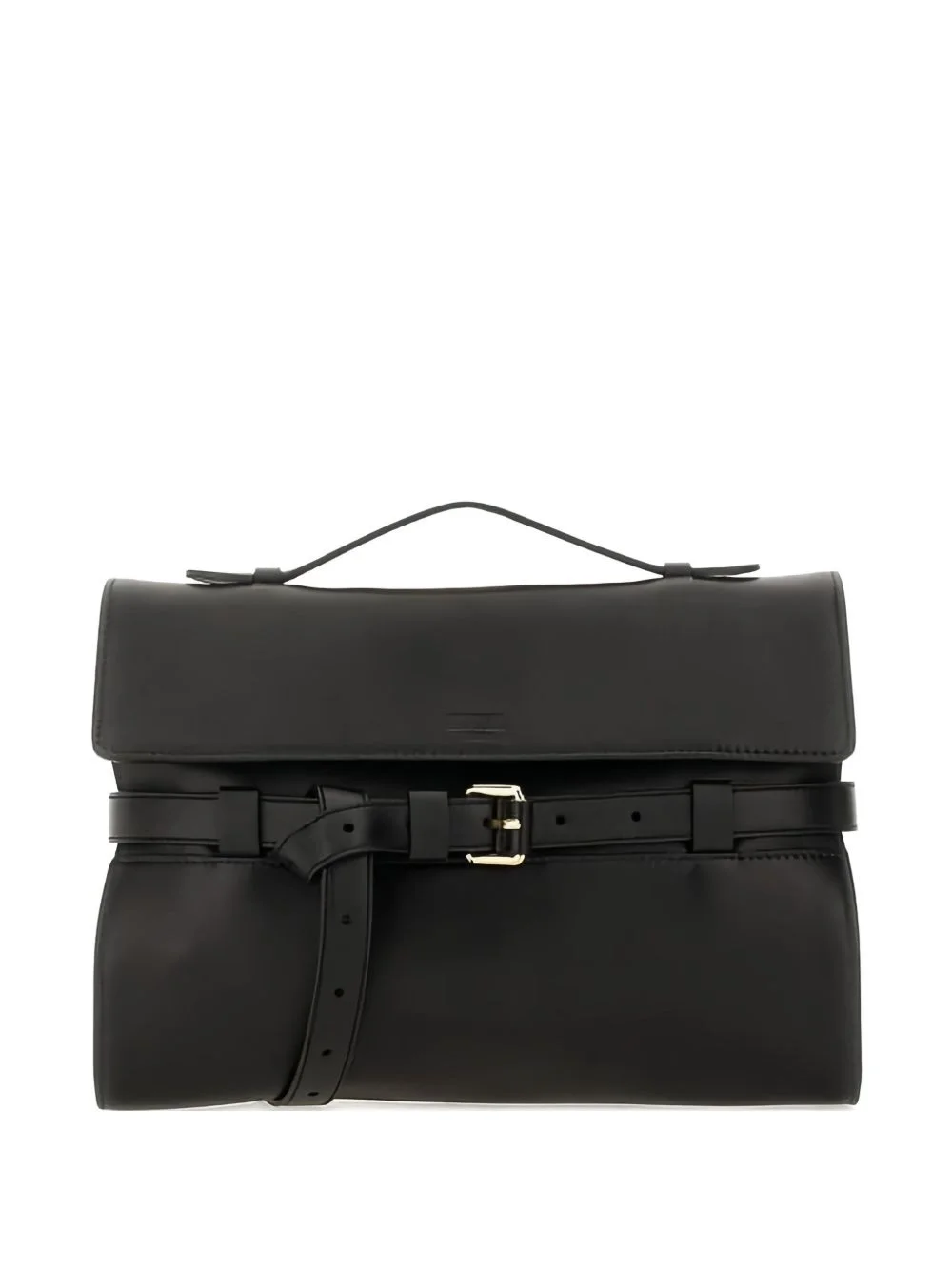 belted leather tote bag Highlights - Black - Rolled top handle - Detachable shoulder strap - Buckle detailing - Structured silhouette Made in Italy Composition Outer: Sheepskin 100% Lining: Cotton 100% SIZE & FIT Measurement DEPTH 2.36 in(6 cm) HEIGHT 8.66 in(22 cm) WIDTH 11.81 in(30 cm)