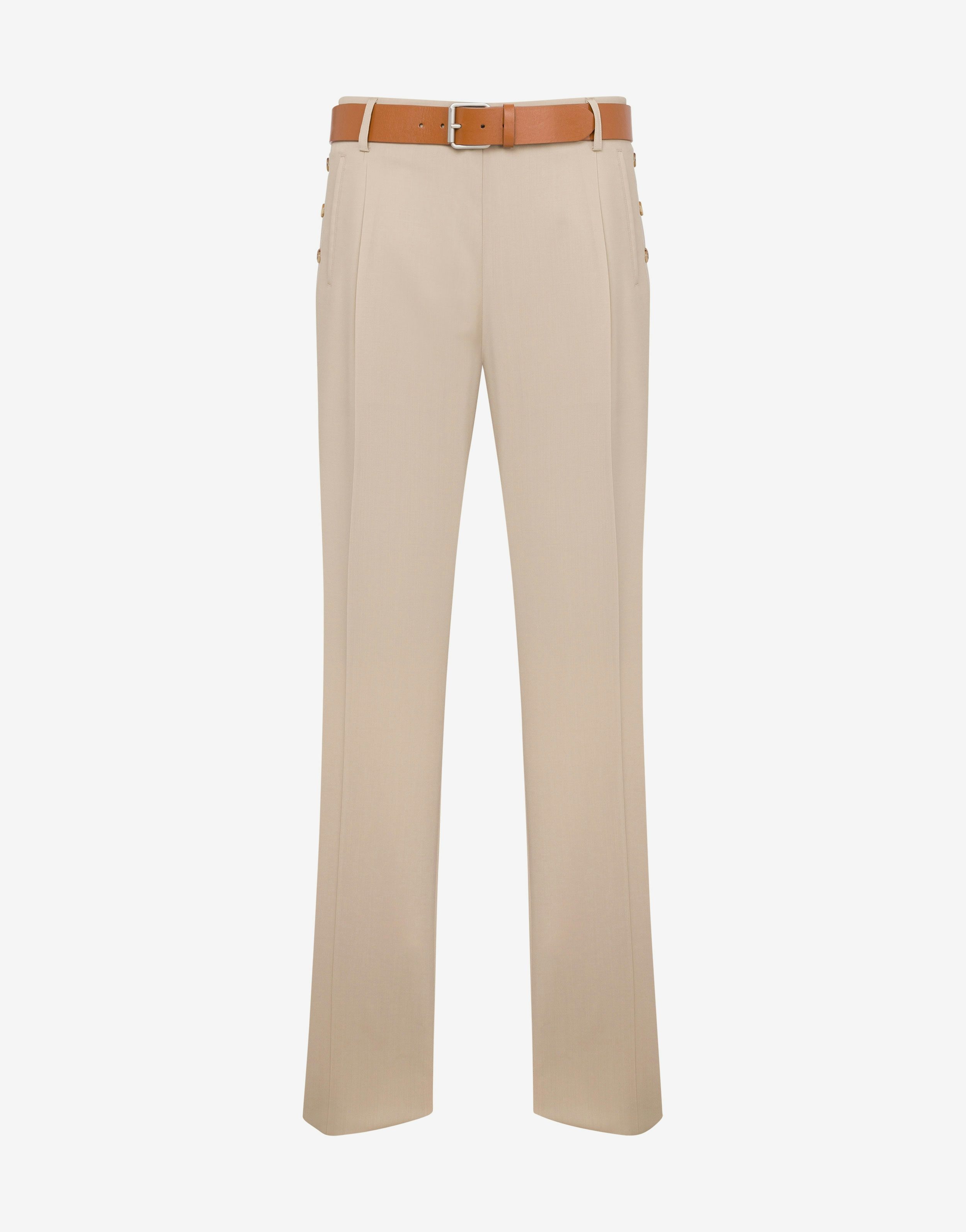 TAILORED-CUT WOOL CANVAS TROUSERS WITH FRONT DARTS AND SIDE BUTTONS. RELAXED FIT BELT LOOPS AT THE WAIST TWO POCKETS ON THE BACK BUTTON CLOSURE ON THE SIDES FABRIC: 100% PURE WOOL LINING: 60% CELLULOSE ACETATE, 40% CUPRO CODE: AEF251ZZ030202170020 FIT MODEL BUST SIZE: 103 CM MODEL HEIGHT: 185 CM MODEL HIPS: 104 CM MODEL SIZE: 48 CM MODEL WAIST: 84 CM