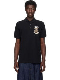 Cotton pique polo. · Rib-knit spread collar and cuffs · Three-button placket · Logo and graphic printed at chest · Tennis-tail hem Supplier color: Multi Black 100% cotton. Made in Portugal 252720M212003