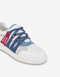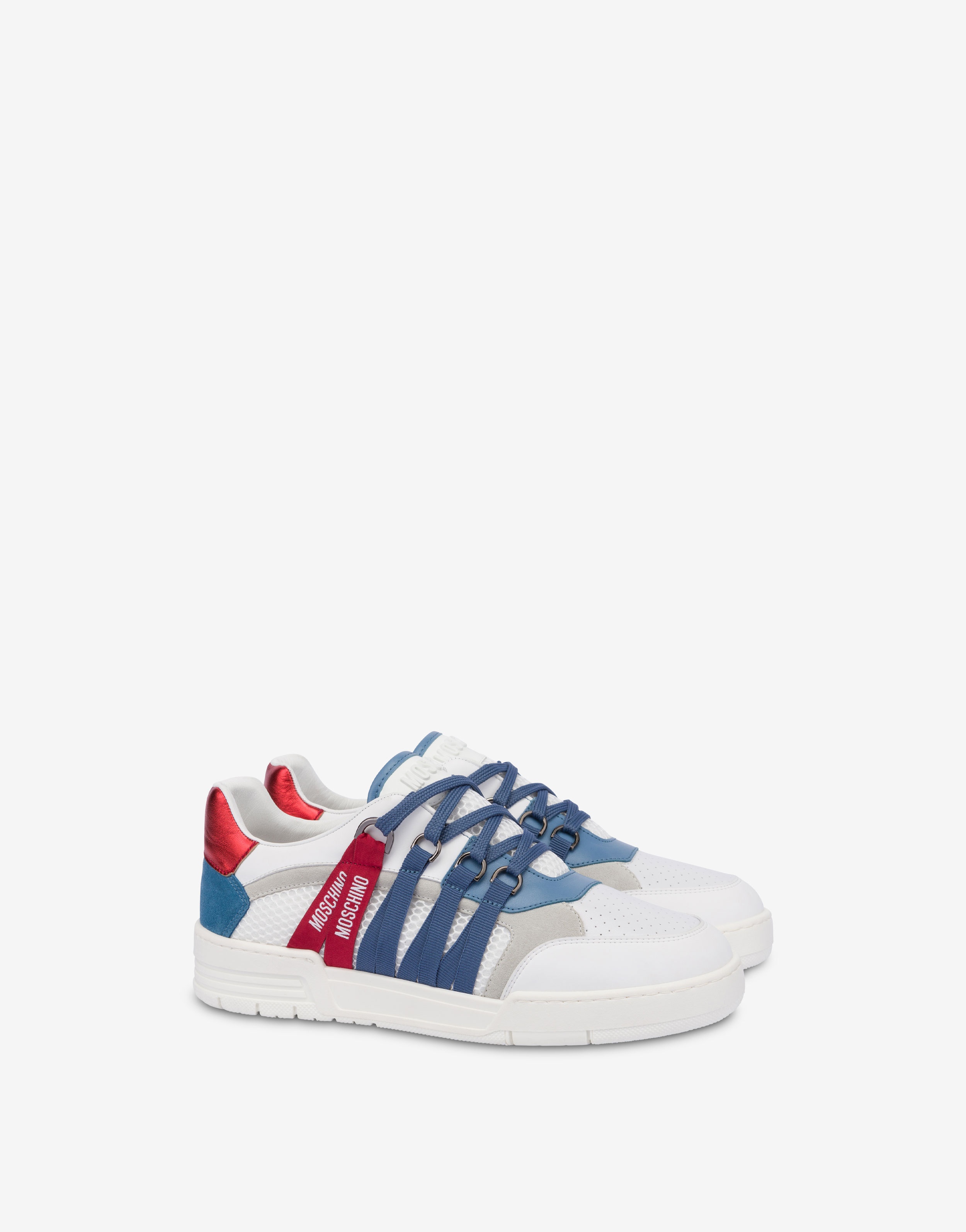 BASKETBALL-INSPIRED SNEAKERS IN CALFSKIN, MESH, RUBBERISED CALFSKIN AND SPLIT LEATHER, WITH RIBBONS THAT WRAP AROUND THE UPPER AND RUBBERISED LOGO ON THE TONGUE. RIBBONS WITH LOGO LACE-UP FASTENING METAL HOOKS EMBOSSED LOGO ON TONGUE RUBBER SOLE BOTTOM: 100% RUBBER LINING: 50% CALFSKIN, 10% COTTON, 40% POLYESTER UPPER: 10% CALFSKIN, 50% POLYESTER, 40% POLYURETHANE CODE: POLMB15174G1LGI510A FIT HEEL HEIGHT: 4 CM
