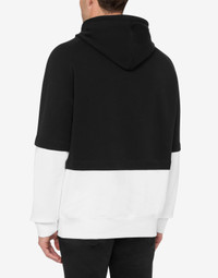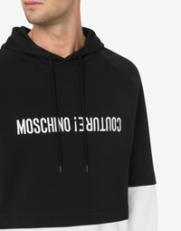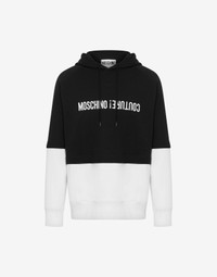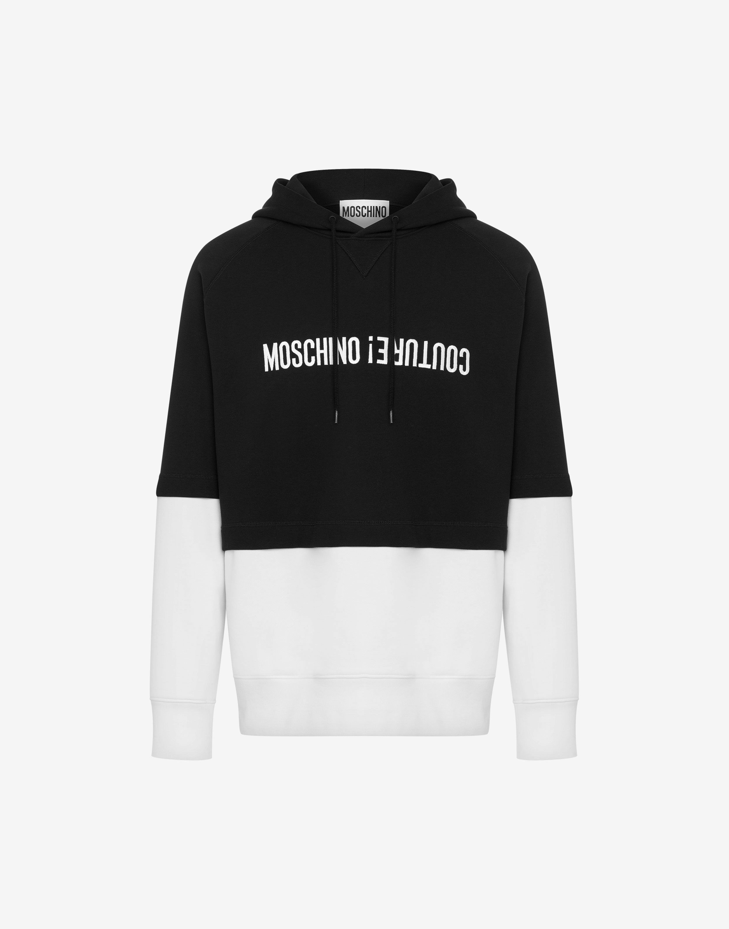 BLACK & WHITE ORGANIC COTTON HOODIE WITH MOSCHINO COUTURE! LOGO EMBROIDERY. UPSIDE DOWN. UPSIDE DOWN LOGO EMBROIDERED ON THE FRONT DRAWSTRING HOOD RAGLAN SLEEVES FABRIC: 100% COTTON CODE: AEF242ZR170970283555