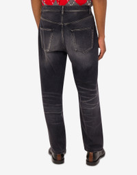 THE FALL/WINTER 2025 COLLECTION FEATURES THE FIVE-POCKET PANT IN BLACK COTTON DENIM WITH SMALL LEATHER DETAIL WITH EMBROIDERED LETTER M. PRODUCT DETAILS REGULAR FIT - THREE POCKETS ON THE FRONT - BELT LOOPS AT THE WAIST - TWO POCKETS ON THE BACK - CLOSURE ON THE FRONT WITH COVERED ZIPPER AND BUTTON FABRIC: 100% COTTON SKU: AEF252ZZA030952220555 FITTING & DIMENSIONS - MODEL HEIGHT: 188 CM - MODEL BUST: 92 CM - MODEL WAIST: 73 CM - MODEL HIPS: 92 CM - MODEL SIZE: 40