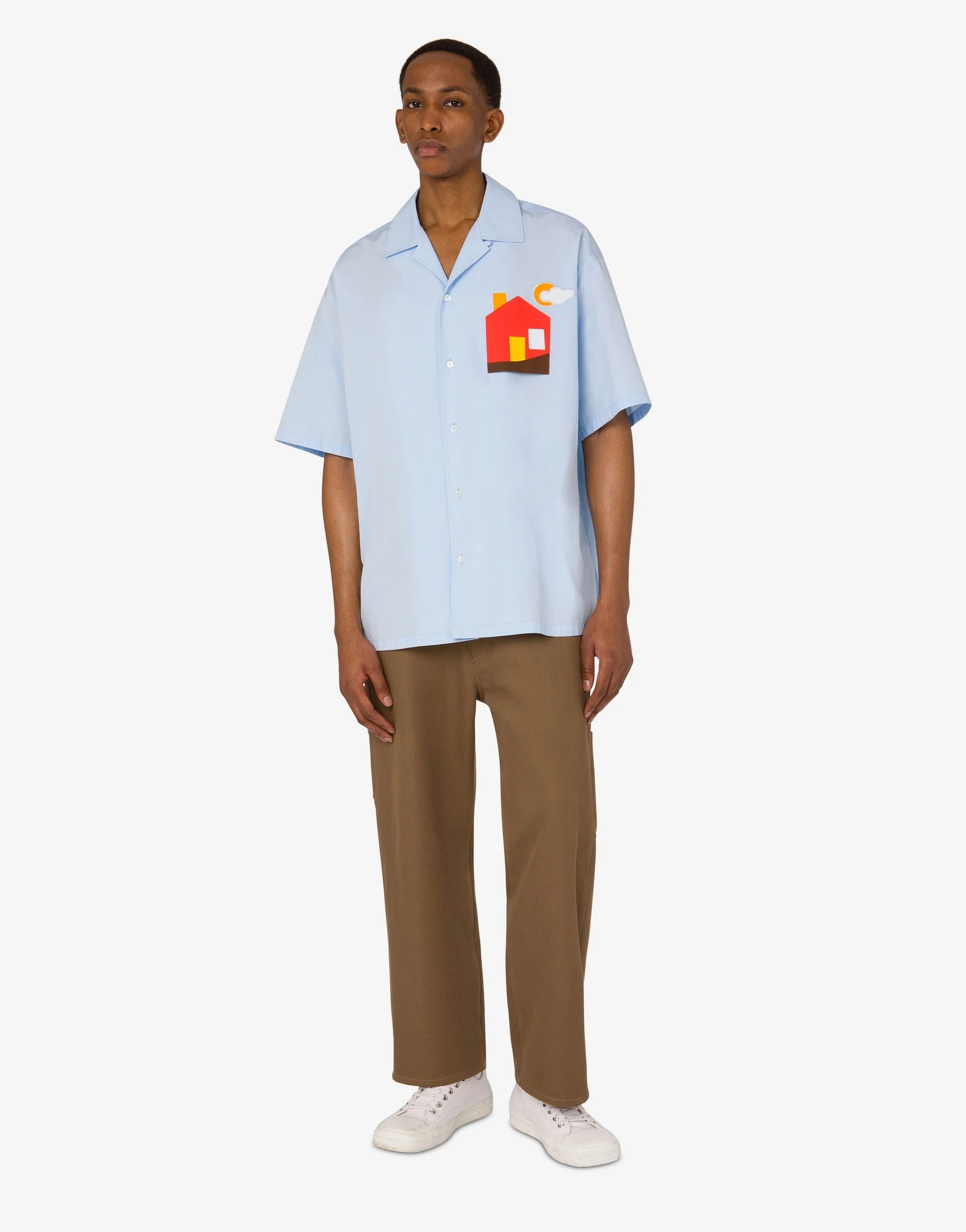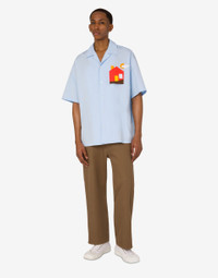 THE FALL/WINTER 2025 COLLECTION FEATURES THE COTTON POPLIN SHIRT WITH ARCHIVAL PATCH EMBROIDERED ON THE FRONT. PRODUCT DETAILS BOWLING FIT - SMALL LAPELS - SHOULDERS DROPPED - SHORT SLEEVES - BUTTON FRONT CLOSURE FABRIC: 100% COTTON SKU: AEF252ZZJ020752351293 FITTING & DIMENSIONS - MODEL HEIGHT: 188 CM - MODEL BUST: 92 CM - MODEL WAIST: 73 CM - MODEL HIPS: 92 CM - MODEL SIZE: 40