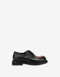 THE AUTUMN/WINTER 2025 COLLECTION PRESENTS TWO-TONE CROCODILE PRINT CALFSKIN DERBIES WITH A ROUNDED, ACCENTUATED TOE, WITH A CONTEMPORARY STYLE. PRODUCT DETAILS - LACE-UP CLOSURE - LEATHER LINING - LEATHER SOLE WITH RUBBER ISLAND BOTTOM: 70% CALFSKIN, 30% RUBBER - UPPER: 100% CALFSKIN - LINING: 100% CALFSKIN SKU: POLMB10012M0NGN100A