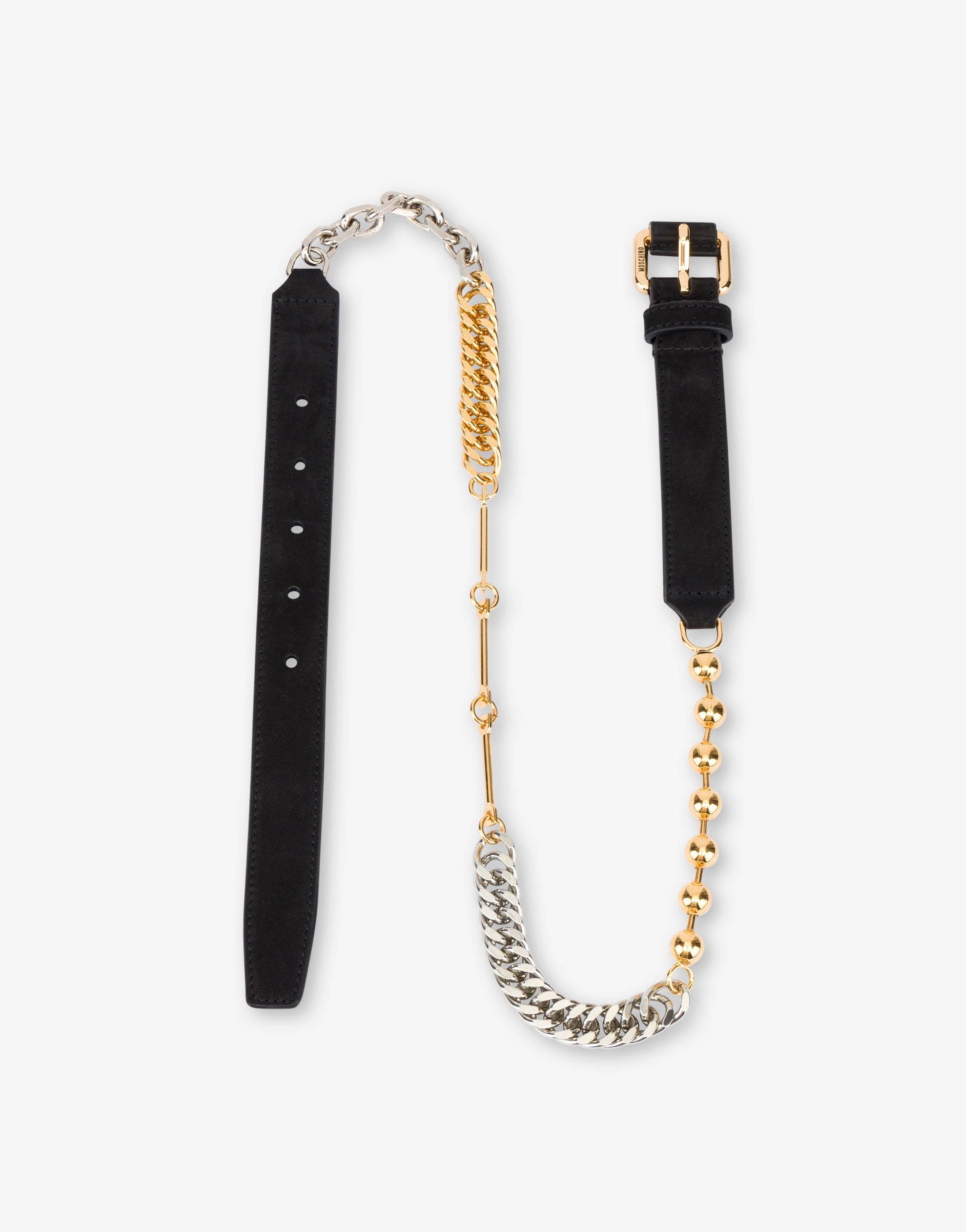 BELT CRAFTED FROM CALFSKIN COMBINED WITH A MIX OF GOLD AND SILVER-TONE METAL CHAINS, CREATING A UNIQUE AND BOLD EFFECT. PRODUCT DETAILS - METAL CHAIN MIX - ADJUSTABLE CLOSURE WITH METAL BUCKLE UPPER: 100% CALFSKIN SKU: POLMD6009PP0MFP000A