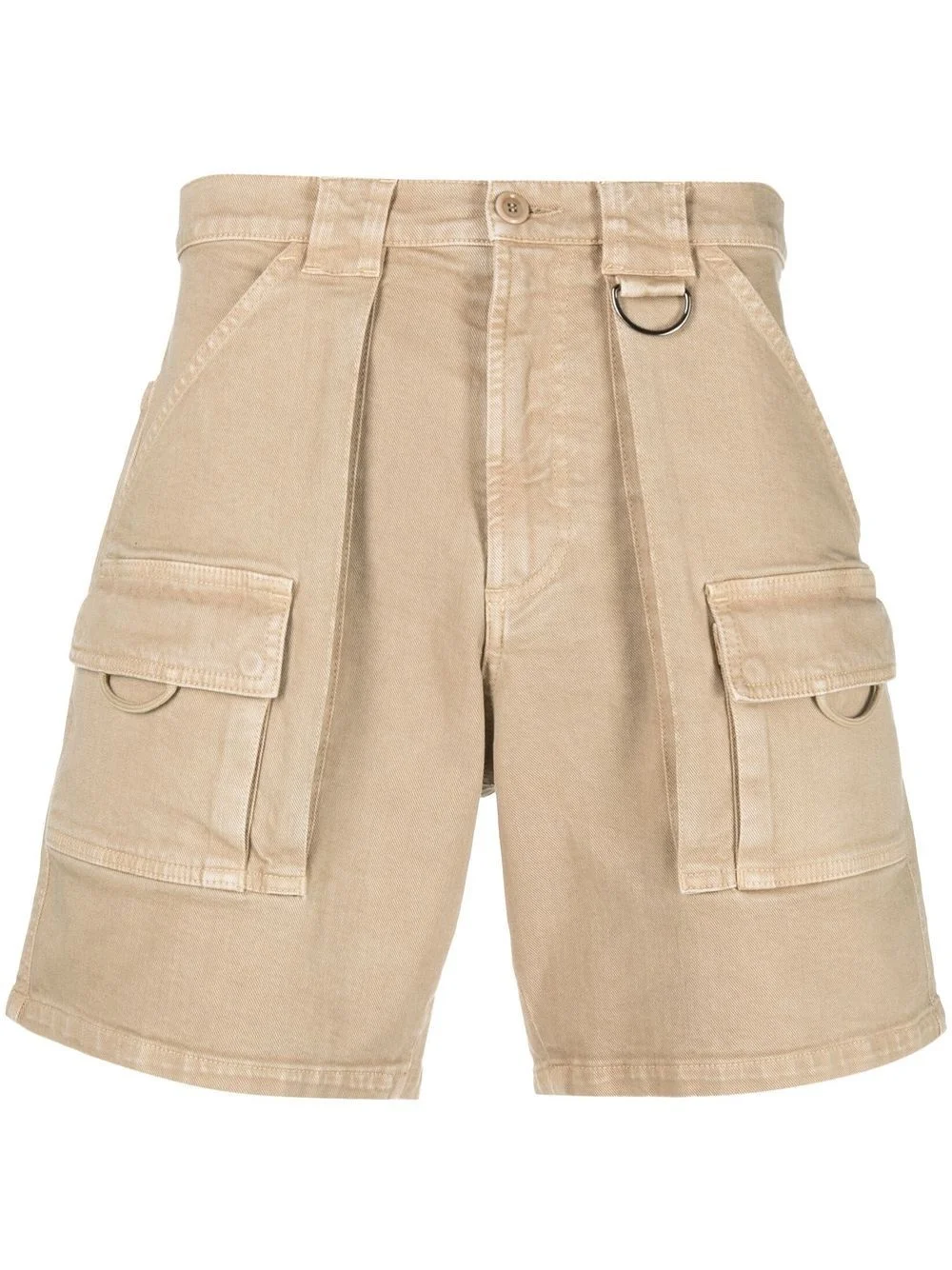 D-ring detail cargo shorts ecru cotton D-ring findings belt loops front button and zip fastening two side flap pockets rear welt pocket Made in Italy Composition Outer: Cotton 99%, Spandex/Elastane 1% Lining: Cotton 100% SIZE & FIT Model measurements Height 6 ft 2 in(1.87 m) Bust/Chest 36.41 in(92.5 cm) Hips 37 in(94 cm) Waist 29.52 in(75 cm) FittingInformation This piece fits true to size. We recommend you get your regular size Designed for a slim fit at the waist and loose over the leg Made with a mid-weight stretch fabric Washing instructions Machine Wash