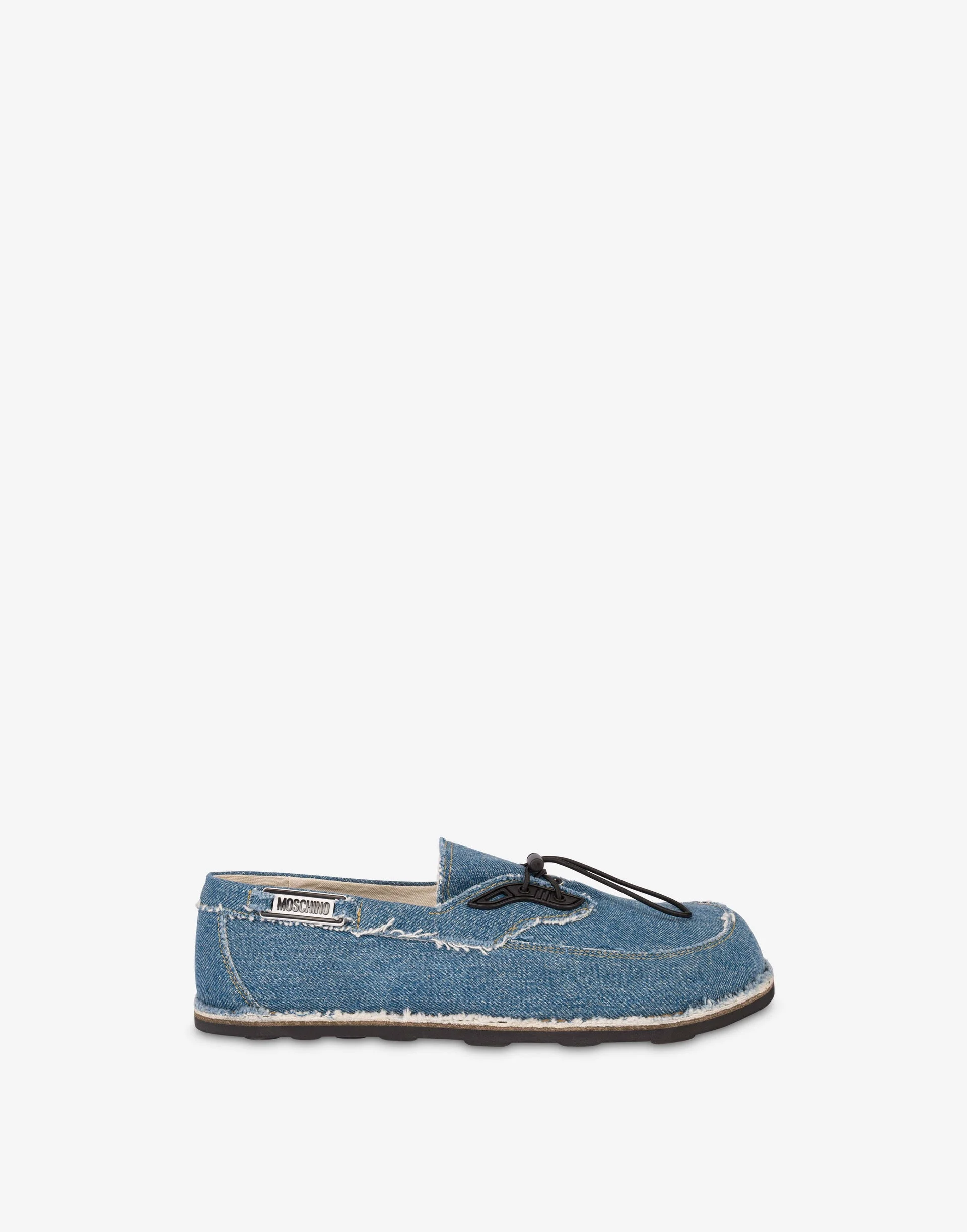 THE SPRING/SUMMER 2026 COLLECTION PRESENTS DENIM LOAFERS, WITH A DESIGN INSPIRED BY CLASSIC BOAT SHOES, FEATURING FRAYED EDGES, ELASTIC DRAWSTRINGS, AND A LOGO APPLIED TO THE OUTER SIDE OF THE UPPER. PRODUCT DETAILS - ELASTIC DRAWSTRING CLOSURE - COTTON LINING - RUBBER SOLE LINING: 100% COTTON - UPPER: 100% COTTON - BOTTOM: 100% RUBBER SKU: POLMB10821G0OGS0707