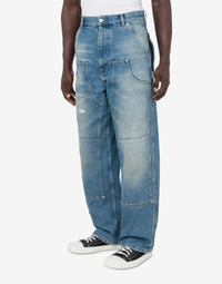 BLUE COTTON DENIM PANTS WITH AN ARCHIVE LOGO PATCH WITH LAUREL WREATH ON THE BACK. SMALL WHITE INTENTIONAL RIPS. REGULAR FIT FRENCH POCKETS FRONT POCKETS WAIST BELT LOOPS BACK POCKETS FRONT ZIP CLOSURE WITH BUTTON FABRIC: 100% COTTON CODE: AEF251ZZ032802230281