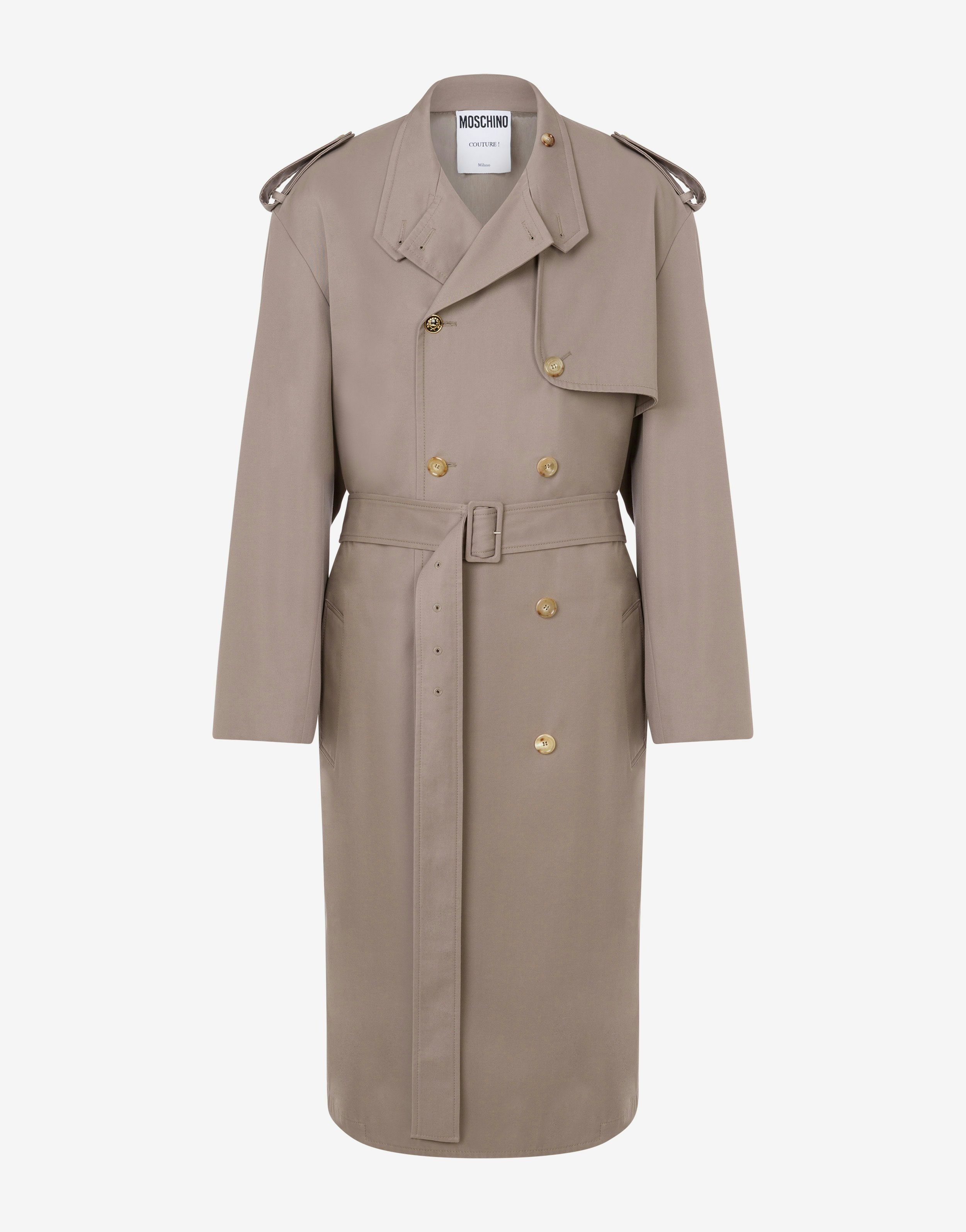 COTTON AND NYLON GABARDINE TRENCH COAT WITH MATCHING BELT AND CONTRASTING BUTTONS. REGULAR FIT DOUBLE-BREASTED BUTTON CLOSURE REMOVABLE AND ADJUSTABLE BELT WITH BUCKLE WIND FLAP WITH BUTTON FABRIC: 35% COTTON, 65% POLYESTER LINING: 60% CELLULOSE ACETATE, 40% CUPRO CODE: AEF251ZZ060502130082