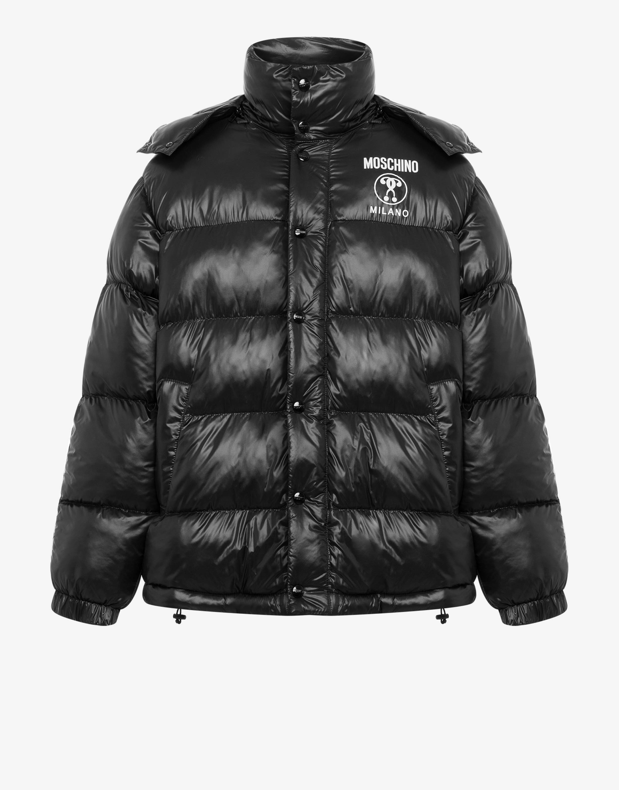 Lightweight nylon down jacket with Double Question Mark logo printed on the front and on the side bands. - Regular fit - Double Question Mark logo printed on the front - Embroidered logo bands on the sleeves - Removable hood with zip - Two side pockets with snap button - Elastic on the sleeve bottom - Drawstring on the bottom - Padded and lined interior - Inner pocket with button Fabric:100% Polyamide Code: AEF222ZR063470171555 FIT - Regular fit - Model bust size : 90 - Model height : 186 cm - Model Hips : 93 cm - Model size : 50 - Model waist : 74 cm