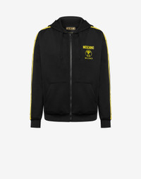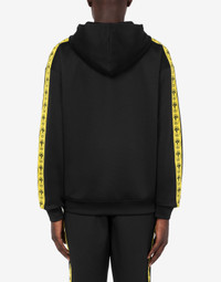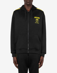 Zipped hoodie in technical stretch fleece, with contrasting logo-branded side bands and Double Question Mark logo on the front. - Regular fit - Side bands with jacquard logo embroidery - Drawstring hood - Logo print on the front - Two front pockets - Zip fastening on the front Fabric:10% Elastan, 90% Polyester Code: AEF231ZR172420292555 FIT - Regular fit - Model bust size : 94 - Model height : 186 cm - Model Hips : 95 cm - Model size : 48 - Model waist : 75 cm