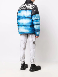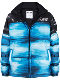 faded-effect logo coat Highlights - Blue/black - Padded design - Logo print at the chest - Logo print to the rear - Classic hood - Front zip fastening - Long sleeves - Two front welt pockets Made in Italy Composition Outer: Polyamide 100% Lining: Viscose 100%, Polyester 100% SIZE & FIT Model measurements Height 6 ft 1 in(1.85 m) Bust/Chest 35.82 in(91 cm) Hips 37.79 in(96 cm) Waist 29.13 in(74 cm) FittingInformation This piece fits true to size. We recommend you get your regular size Cut for a loose fit Made with a mid-weight non-stretch fabric Washing instructions Dry Clean Only
