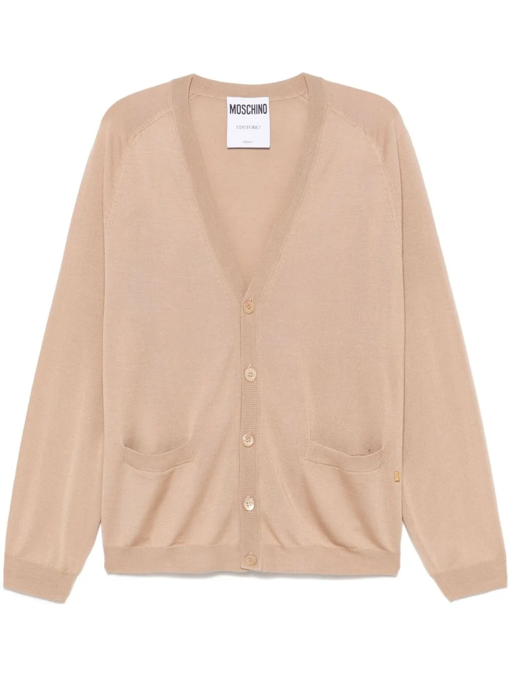 fine-knit cardigan Highlights - Sand beige - Front button fastening - Two front patch pockets - Ribbed cuffs and hem - Long raglan sleeves Imported Composition Virgin Wool 70%, Silk 30%