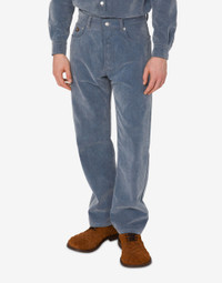 THE FALL/WINTER 2025 COLLECTION FEATURES THE FIVE-POCKET PANTS IN COTTON FLOCKED DENIM WITH EMBROIDERED LEATHER DETAIL AND M-SHAPED BACK LOOPS. PRODUCT DETAILS REGULAR FIT - THREE FRONT POCKETS - BELT LOOPS AT WAIST - TWO BACK POCKETS - BUTTON FRONT CLOSURE FABRIC: 86% COTTON, 14% VISCOSE SKU: AEF252ZZA031152210322