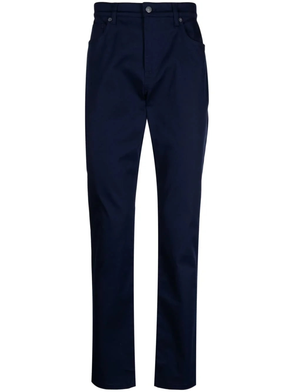 front-fastening straight-leg trousers Highlights - Blue - Stretch-cotton - Logo patch to the rear - Front button and zip fastening - Classic five pockets - Belt loops - Straight leg Made in Italy Composition Cotton 97%, Elastane 3% SIZE & FIT Model measurements Height 6 ft 2 in(1.87 m) Bust/Chest 34.25 in(87 cm) Hips 36.22 in(92 cm) Waist 29.52 in(75 cm) FittingInformation Designed for a slim fit, offering a comfortable fit that sits just away from the leg Made from a midweight stretch fabric, this piece offers elasticity and flexibility when worn This piece fits true to size – take your usual size Washing instructions Machine Wash