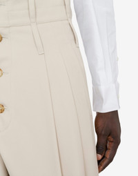 TAILORED COTTON AND NYLON GABARDINE PANTS, WITH FRONT PLEATS, CENTRAL BUTTONS, AND DOUBLE BELT LOOPS AT THE WAIST. TWO SIDE POCKETS TWO BACK POCKETS WITH FLAP FRONT BUTTON CLOSURE WITH HIDDEN HOOK FABRIC: 35% COTTON, 65% POLYESTER CODE: AEF251ZZ030802130045