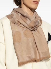 heart-pattern fringed scarf Highlights - Beige - Heart pattern - Metallic thread detail - Fringed edges Made in Italy Composition Viscose 47%, Modal 26%, Acrylic 14%, Polyester 6%, Wool 5%, Metal 2% SIZE & FIT Measurement LENGTH 55.11 in(140 cm) WIDTH 55.11 in(140 cm)
