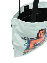 illustration-print tote bag Highlights - Light blue/multicolour - Calf leather - Illustration-style print - Snap-fit fastening - Circular top handles - Main compartment - Internal zip-fastening pocket - Full lining Made in Italy Composition Outer: Calf Leather 100% SIZE & FIT Model measurements Height 6 ft 2 in(1.87 m) Bust/Chest 37 in(94 cm) Hips 33.85 in(86 cm) Waist 27.95 in(71 cm) Measurement DEPTH 0.39 in(1 cm) HANDLE 9.84 in(25 cm) HEIGHT 14.96 in(38 cm) WIDTH 16.14 in(41 cm)