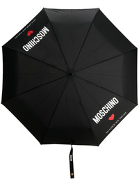 In Love We Trust compact umbrella Highlights - Black/white/rose red - Waterproof - Folded design - Heart print - Logo print to the front - Embossed logo to the front - Strap and press-stud fastening - Push-button folding clasp - Wrist strap Imported Composition Polyester 100%