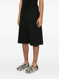 knee-length shorts Highlights - Black - Concealed front button, hook and zip fastening - Belt loops - Two side slash pockets - Two rear button-fastening pockets Made in Italy Composition Cotton 75%, Polyamide 25% SIZE & FIT Model measurements Height 6 ft 2 in(1.89 m) Bust/Chest 35.03 in(89 cm) Hips 38.18 in(97 cm) Waist 29.92 in(76 cm) FittingInformation Designed for relaxed fit, offering a comfortable loose fit over the leg Made from a midweight non-stretch fabric, this piece offers minimal elasticity when worn