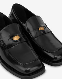 THE AUTUMN/WINTER 2025 COLLECTION PRESENTS MOCCASINS IN BRUSHED CALFSKIN WITH A PENNY MASK FEATURING A GOLD-PLATED COIN. PRODUCT DETAILS - MONEY WITH FRANCO MOSCHINO DEPICTION - MONEY WITH HEART AND LAUREL WREATH - MONEY RIVETED AND FASTENED - LEATHER LINING - LEATHER AND RUBBER SOLE - LEATHER MIDSOLE - RUBBER TREAD BOTTOM: 70% CALFSKIN, 30% RUBBER - LINING: 100% CALFSKIN - UPPER: 100% CALFSKIN SKU: POLMB10423M0NGB0000