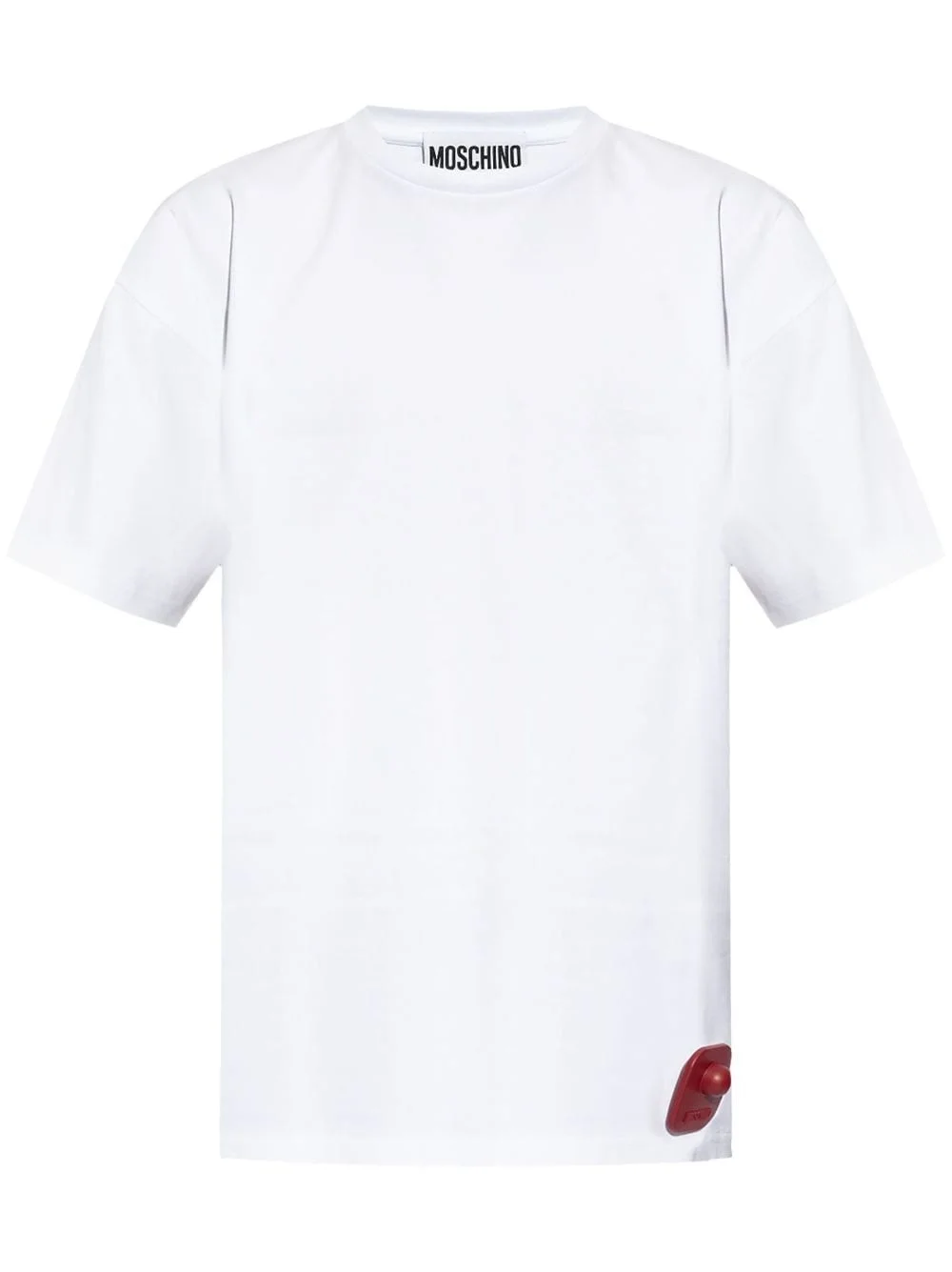 logo applique cotton t-shirt Highlights - White/red - Cotton - Applique logo - Round neck - Short sleeves - Straight hem Imported Composition Cotton 100% SIZE & FIT FittingInformation Designed to be unstructured, offering a loose fit throughout Made from a midweight non-stretch fabric, this piece offers minimal elasticity when worn