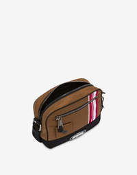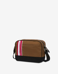 NYLON CAMERA BAG WITH CONTRASTING TWO-TONE STRIPED PATCHES, RUBBERISED CALFSKIN DETAILS AND RUBBERISED LOGO ON THE FRONT. STRIPED PATCHES ON BOTH SECTIONS ADJUSTABLE RIBBON SHOULDER STRAP REMOVABLE KEYRING ACCESSORY ZIPPED POCKET ON THE FRONT SMALL POCKET WITH PRESS STUD ZIP FASTENING LINED INTERIOR WITH A ZIPPED POCKET AND PATCH POCKET FABRIC: 10% ACRYLIC, 90% POLYAMIDE CODE: AEF242Z2747482282555 FIT DEPTH: 9 CM HEIGHT: 20 CM WIDTH: 26 CM