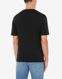 RECYCLED COTTON JERSEY T-SHIRT WITH CONTRASTING MOSCHINO COUTURE! LOGO EMBROIDERY. REGULAR FIT THREAD LOGO EMBROIDERY SHORT SLEEVES FABRIC: 100% COTTON CODE: AEF242ZR071770401555 FIT MODEL BUST SIZE: 103 CM MODEL HEIGHT: 185 CM MODEL HIPS: 104 CM MODEL SIZE: 48 CM MODEL WAIST: 84 CM