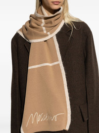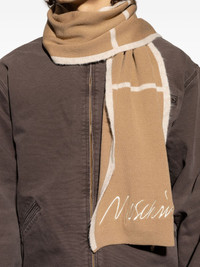 logo-embroidered panelled scarf Highlights - Beige - Wool knit - Embroidered logo Made in Italy Composition Wool 83%, Acrylic 8%, Nylon 5%, Mohair 3%, Fabric 1% SIZE & FIT Measurement LENGTH 70.86 in(180 cm) WIDTH 11.81 in(30 cm) Washing instructions Read Manufacturer Guidelines
