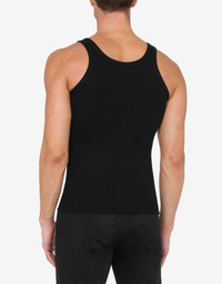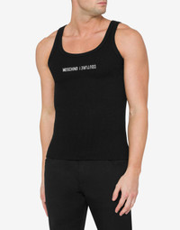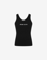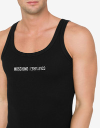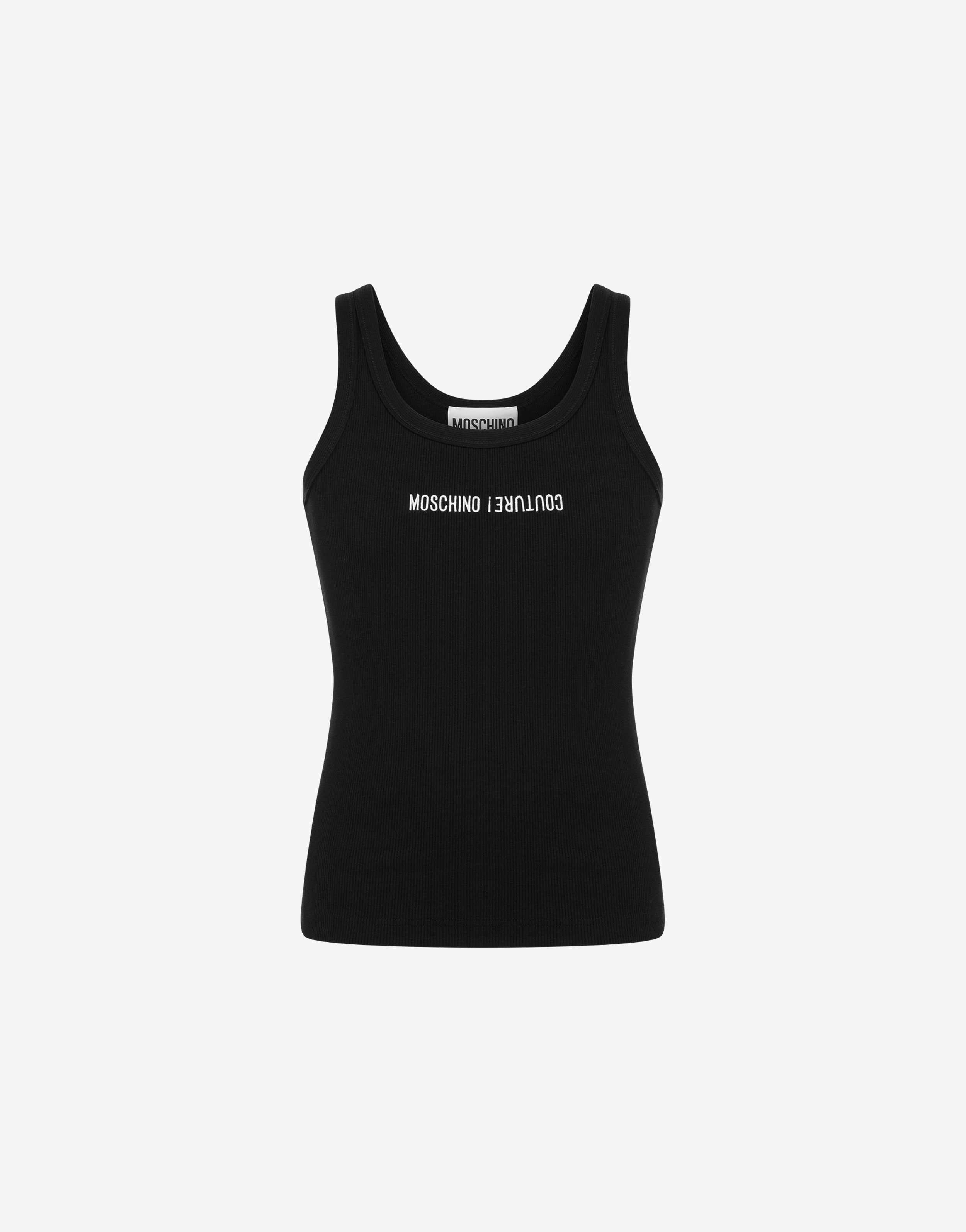 STRETCH COTTON TANK TOP WITH RIBBED KNIT AND CONTRASTING MOSCHINO COUTURE UPSIDE DOWN LOGO EMBROIDERY. SLIM FIT THREAD EMBROIDERY ON THE FRONT ROUND NECK FABRIC: 95% COTTON, 5% ELASTAN CODE: AEF242ZR890170301555