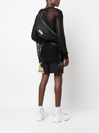 logo-patch belt bag Highlights - Black - Calf leather - Rubber logo patch to the front - Silver-tone hardware - D-ring findings - Adjustable logo shoulder strap - Buckle fastening - Front zip fastening - Main compartment - Debossed internal logo - Internal zip-fastening pocket - Internal card slot - This piece comes complete with a protective dust bag. Imported Composition Outer: Fabric 100%, Calf Leather 100% SIZE & FIT Model measurements Height 6 ft 3 in(1.9 m) Bust/Chest 35.8 in(91 cm) Hips 34.6 in(88 cm) Waist 28 in(71 cm) Measurement DEPTH 3.9 in(10 cm) HEIGHT 7.1 in(18 cm) Maximum strap length 59.8 in(152 cm) Minimum strap length 50 in(127 cm) WIDTH 18.9 in(48 cm)