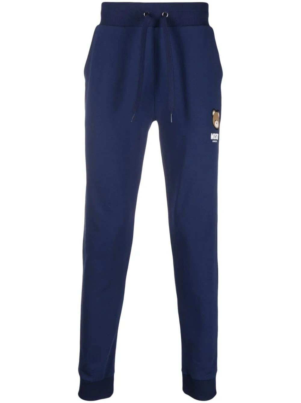 logo-patch track pants Highlights - Navy blue - Stretch-cotton - Logo patch to the front - Signature teddy bear motif - Elasticated drawstring waistband - Two side inset pockets - Elasticated ankles - Straight hem Imported Composition Cotton 92%, Elastane 8% SIZE & FIT Model measurements Height 6 ft 1 in(1.85 m) Bust/Chest 35.43 in(90 cm) Hips 35.82 in(91 cm) Waist 27.55 in(70 cm) FittingInformation Designed for a slim fit, offering a comfortable fit that sits just away from the body The elasticated waist allows for a comfortable fit Made from a midweight stretch fabric, this piece offers elasticity and flexibility when worn This piece fits true to size – take your usual size Washing instructions Machine Wash