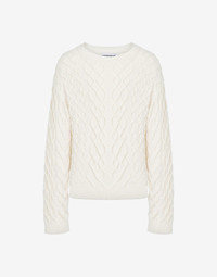 ORGANIC COTTON BLEND PULLOVER WITH LEATHER LOGO LABEL ON THE BACK. THE CABLE KNIT CREATES DELICATE GEOMETRIC RELIEF PATTERNS. CREW NECK DROPPED SHOULDERS LOGO LABEL APPLIED ON THE BACK FABRIC: 62% COTTON, 38% POLYAMIDE CODE: AEF251ZZ092702070003