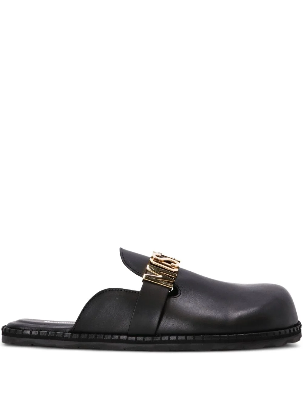 logo-plaque leather mules Highlights - Black - Leather upper - Gold-tone logo plaque - Slip-on style - Flat sole - Rounded toe Imported Composition Outer: Calf Leather 100% Sole: Rubber 100% Lining: Calf Leather 100%