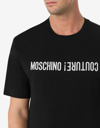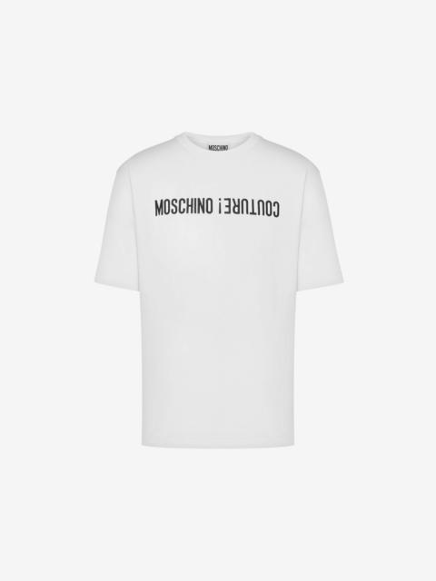 ORGANIC COTTON JERSEY T-SHIRT WITH MOSCHINO COUTURE! LOGO EMBROIDERY. CONTRASTING UPSIDE DOWN DETAIL REGULAR FIT LOGO EMBROIDERY ON THE FRONT SHORT SLEEVES FABRIC: 100% COTTON CODE: AEF242ZR070370411555