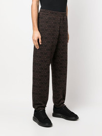 all-over embroidered logo track pants brown all-over logo embroidery elasticated waistband rear welt pocket elasticated ankles Made in Italy Composition Polyester 60%, Cotton 40% SIZE & FIT Model measurements Height 6 ft 1 in(1.86 m) Bust/Chest 37.4 in(95 cm) Hips 34.64 in(88 cm) Waist 29.13 in(74 cm) FittingInformation This piece fits true to size. We recommend you get your regular size Designed to be loose over the leg with a fitted waist and hem Made with a mid-weight fabric Washing instructions Hand Wash