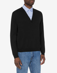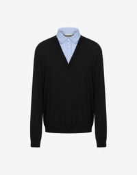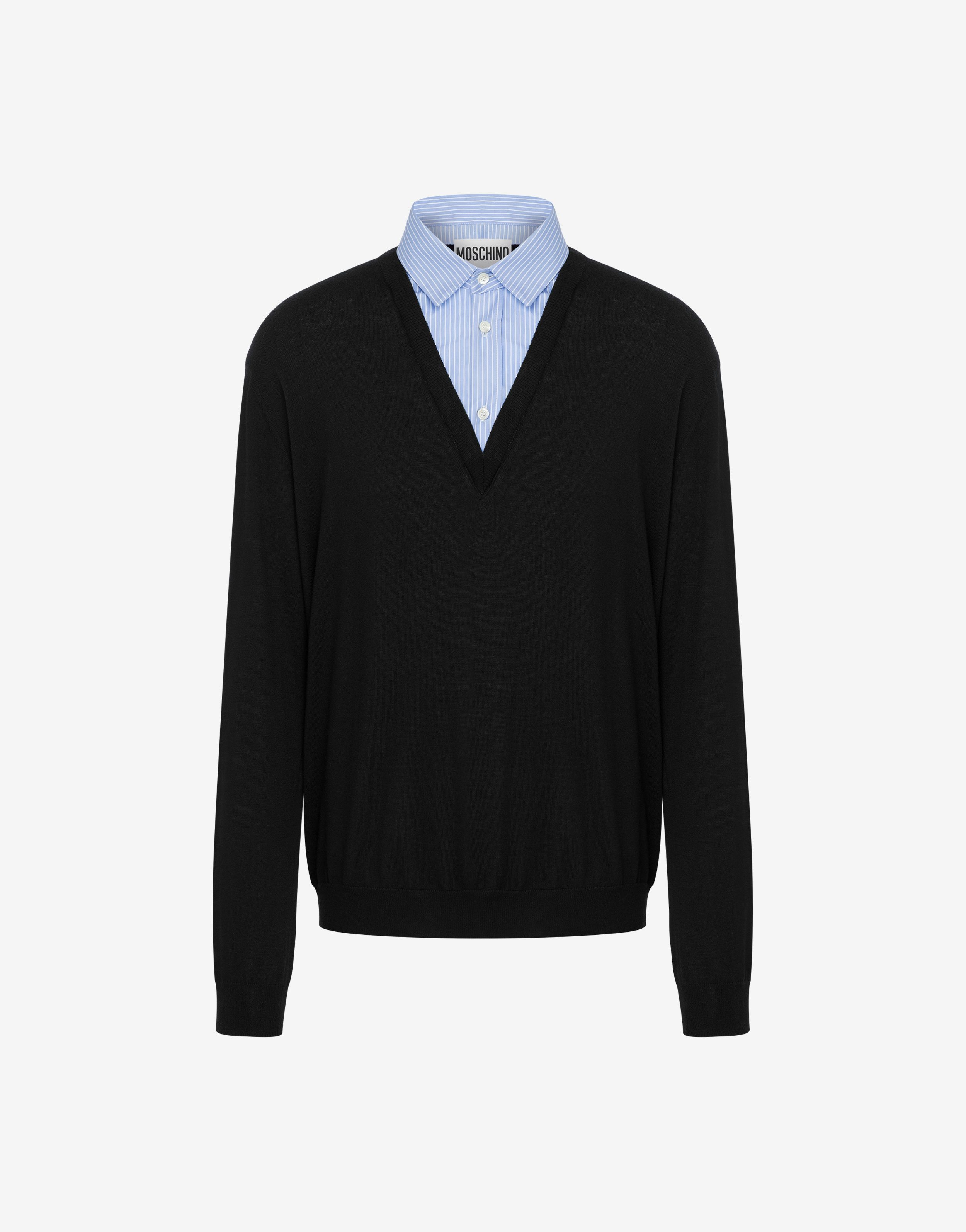 COTTON AND CASHMERE SWEATER WITH STRIPED COTTON POPLIN SHIRT INSERT AND UPSIDE DOWN LOGO EMBROIDERY ON THE COLLAR. TROMPE L'OEIL-EFFECT SWEATER LOGO EMBROIDERY ON THE BACK PARTIAL FASTENING WITH BUTTONS FABRIC: 15% CASHMERE, 85% COTTON CODE: AEF242ZR093070050555
