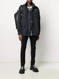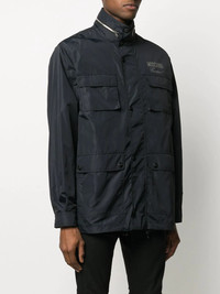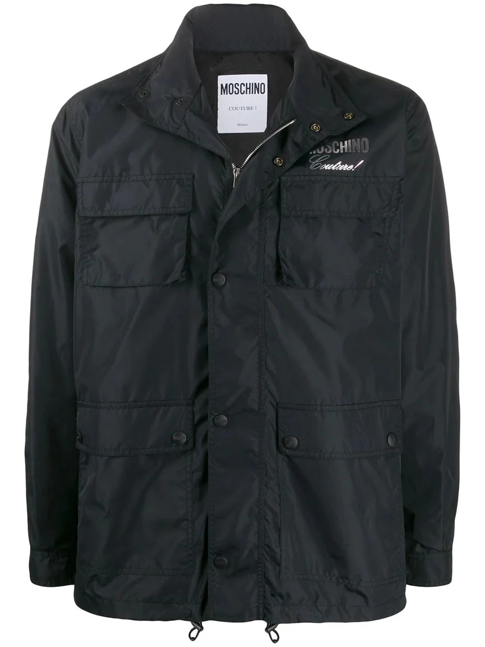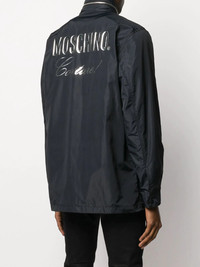 logo print lightweight jacket Get ready to face any weather adversities with this logo print lightweight jacket from Moschino. Crafted from a lightweight material, this jacket will always keep you protected. Trust Moschino's power! Featuring a funnel neck, a zip and press stud fastening, long sleeves, two chest pockets, two front pockets, a printed logo and a drawstring hem. Made in Italy Composition Outer: Polyamide 100% Lining: Viscose 100% SIZE & FIT Model measurements Height 6 ft 2 in(1.88 m) Bust/Chest 36.61 in(93 cm) Hips 35.82 in(91 cm) Waist 27.95 in(71 cm) FittingInformation This piece fits true to size. We recommend you get your regular size Cut for a loose fit Made with a mid-weight non-stretch fabric Washing instructions Hand Wash