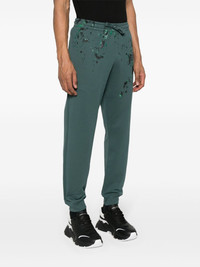 logo-print track pants Highlights - Green - Cotton - Jersey texture - Paint splatter detail - Logo print to the side - Two side inset pockets - Rear welt pocket - Elasticated ankles - Elasticated drawstring waistband Imported Composition Cotton 100% SIZE & FIT Model measurements Height 6 ft 2 in(1.87 m) Bust/Chest 37 in(94 cm) Hips 33.85 in(86 cm) Waist 27.95 in(71 cm) FittingInformation Designed for a relaxed tapered leg, allowing a comfortable loose fit above the knee with a closer fit towards the calves Adjust this piece’s waistband to your preference using the drawstring Made from a midweight non-stretch fabric, this piece offers minimal elasticity when worn This piece fits true to size – take your usual size Washing instructions Hand Wash